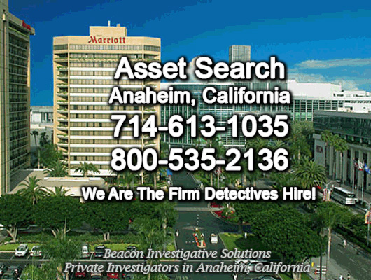 Beacon Investigative Solutions provides comprehensive asset search investigations to customers in Anaheim, California, uncovering hidden assets such as bank accounts, stocks and bonds, moneys owed and other assets. Naturally, we follow all applicable California, federal and local laws during our investigations. If you are trying to collect on a judgment, or need to know about a company’s or individual’s assets for any reason, give us a call today so that we can help you with our expert Anaheim asset search and discovery investigations.